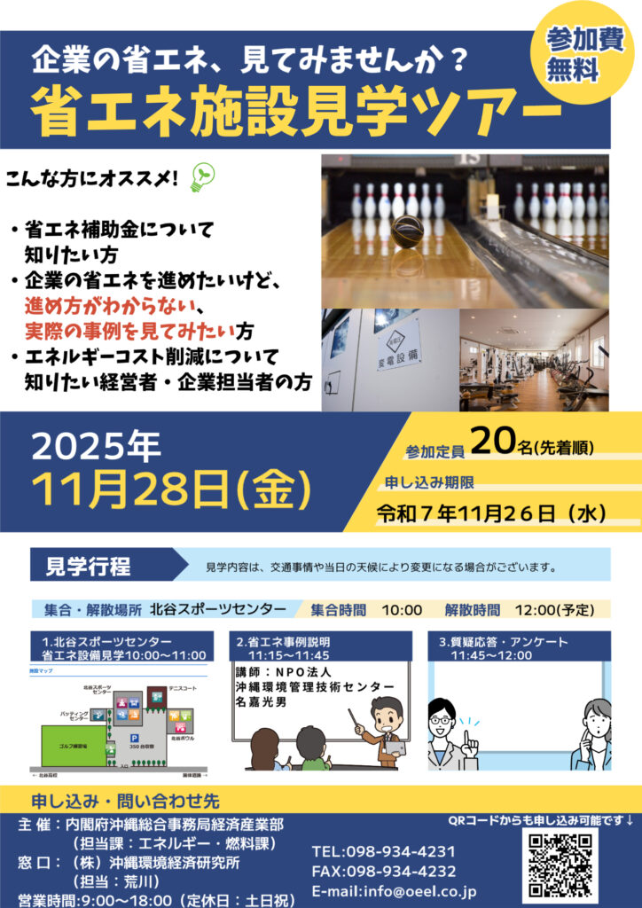 内閣府沖縄総合事務局経済産業部主催 省エネ施設見学ツアーのご案内です。