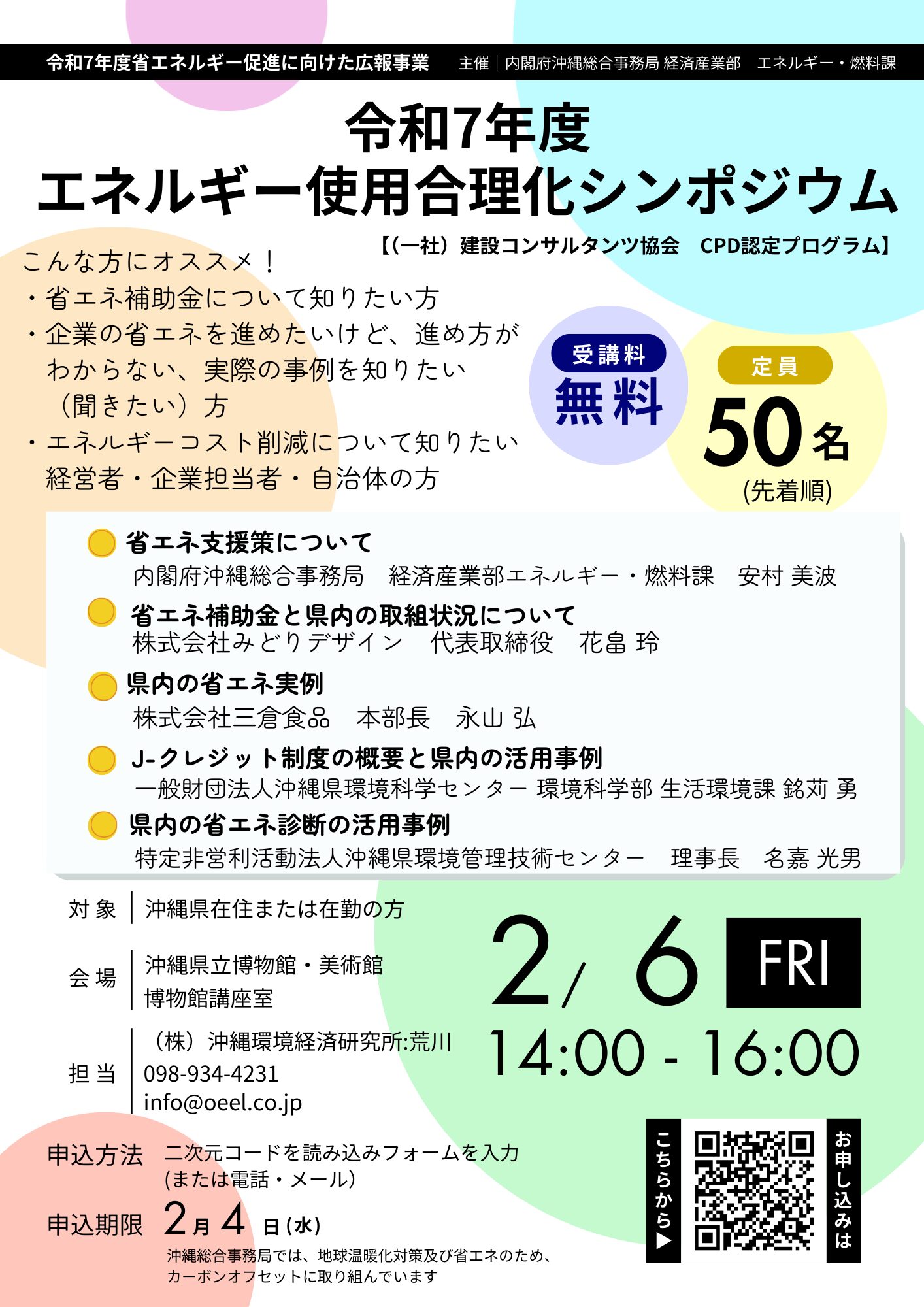 内閣府沖縄総合事務局経済産業部主催 エネルギー使用合理化シンポジウムのご案内です。